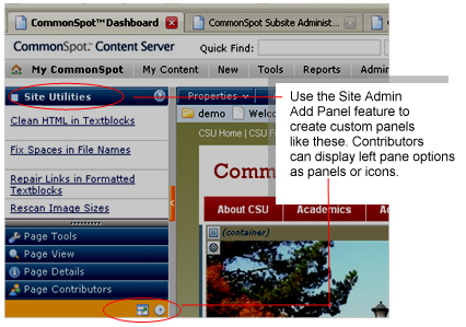 You are here: Administrators Reference > Site Administration > Site Properties/Settings > Left Pane Settings > Add Panel