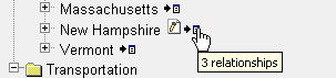 Relationships - On mouseover, displays the number of defined relationships, as shown below. Click to display the Relationships dialog to view or change current relationships.
