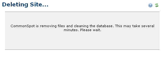 This dialog reports progress once you confirm site deletion and complete all steps required to finish deletion.