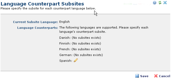 You are here: Administrators Reference > Subsite Administration > Subsite Properties > Language Counterpart Subsites
