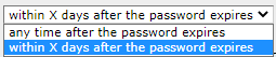 Default Password Expiration Days: The default number of days before which the user is required to change their password. Specify 0 for no expiration. This setting can be overridden for individual users in the User Profile dialog.