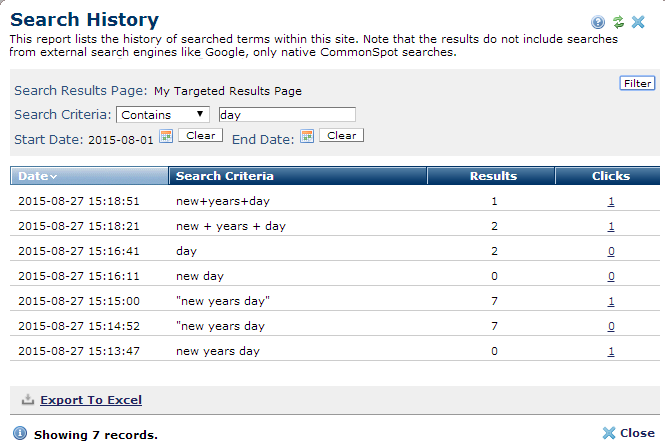 You are here: Administrators Reference > Site Administration > Site Search > Search History