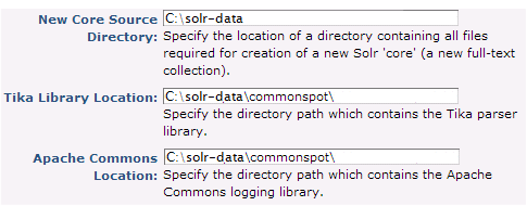 Use this dialog to complete or change custom or native Solr configuration from Server Administration - Configuration - Search Settings or as part of the upgrade or installation process. See "Search Engine API" and the subsection "Extending CommonSpot’s SOLR Implementation" in the CommonSpot Developer's Guide for details on implementing and extending Solr.