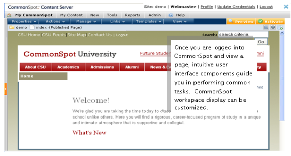 CommonSpot empowers any and all Web site users with the following, all without leaving the Web browser:
