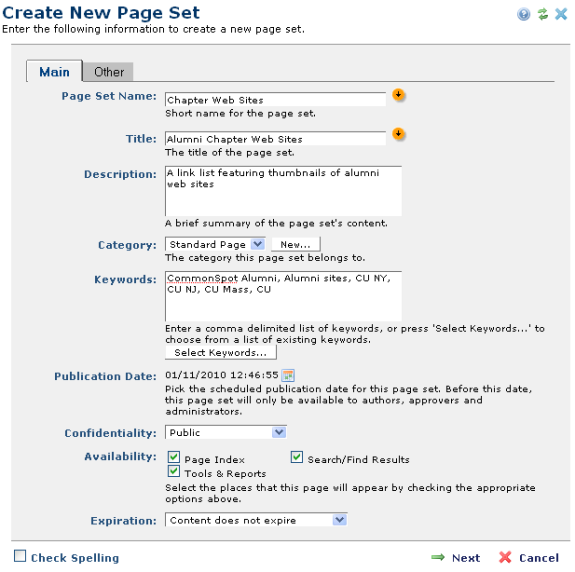 You are here: Contributors Reference > CommonSpot Menus > New Menu > Page Set > Create New Page Set
