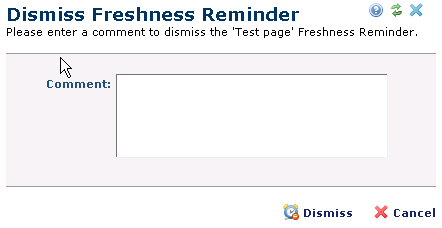You can choose to dismiss freshness reminders you receive. Click Dismiss. Add an optional comment.