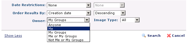 Click Search to apply your criteria, or Cancel to exit. See Find Image Search Results
