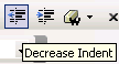 The ‘Decrease Indent’ button reverses ‘Increase Indent’ operation, so you can apply it only if ‘Increase Indent’ was already applied to the text. The text moves to the left each time you click the ‘Decrease Indent’ button on the toolbar or use the shortcut keys "Shift+Tab":
