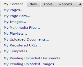 My Content displays personalized views of content you own. Use this menu for fast access to the following content types.