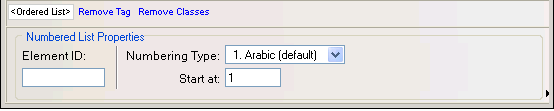 In the Element ID text box enter some value to uniquely identify the numbered list on the page.