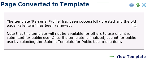 You are here: Contributors Reference > CommonSpot Menus > Templates Menu > Copy Current Page as a Template > Page Converted to Template