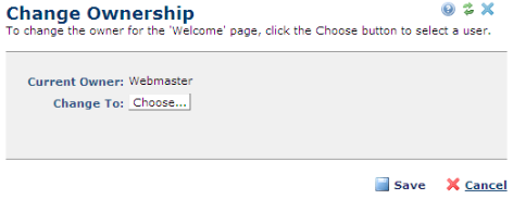 To change and assign owners, click the Choose button, select a user from the list, and click OK. To list users by organization click the Users by Organization button, to assign a group as an owner, click the Groups button and choose a group.
