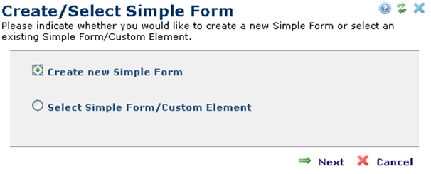 and choose Select Simple Form to open the Create/Select Simple Form dialog.