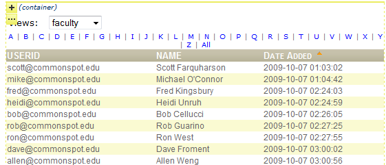 Uset the Datasheet Element to select site data from pages, forms, Custom Elements, or custom queries and render it table format. CommonSpot provides advanced formatting, sorting, and filtering options for rendered data.