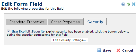 Click Edit Security Settings to set security for individual fields.