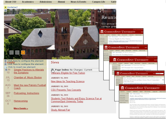 The News section on the home page of the CommonSpot demo site shown above is a page index that sorts using the following criteria: