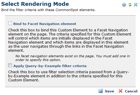 If you are currently using either of these, pick an option and click Save. Settings for each option affect how Custom Element content displays to site visitors.